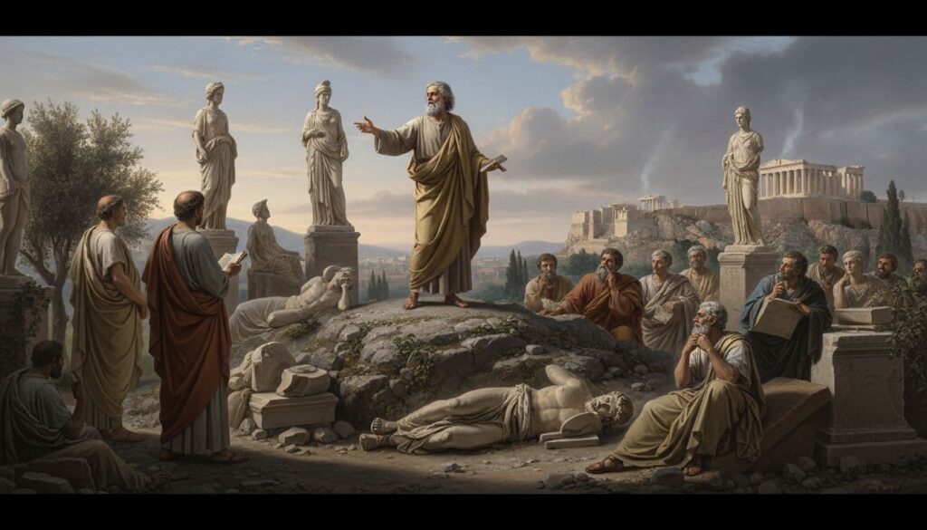 Paul at Mars Hill among idols and thinkers.